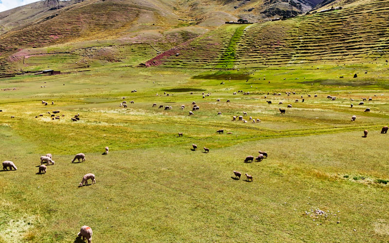 También apreciará rebaños de llamas y alpacas que pastan en todo el valle. llevándonos a nuestro destino final, el punto más alto de nuestra caminata, Montaña de Siete Colores, aquí nos detendremos para admirar y apreciar las vistas excepcionales que encontraremos en todas las direcciones y también las raras Formaciones geológicas con colores exóticos. Nos detendremos para explorar durante unos 30 minutos: la cantidad de tiempo perfecta para descansar, sumergirnos en este entorno salvaje antes de comenzar nuestro descenso.