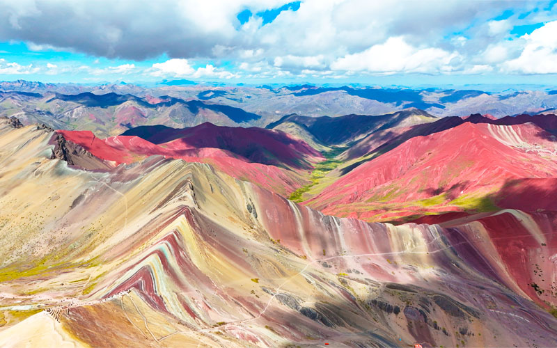 La Montaña del Arco Iris del Perú, también conocida como Winicunca, la Montaña de los Siete Colores o la Montaña del Arco Iris, aunque la gente local de la zona lo llaman Cerro Colorado, es impresionante y se puede ver en la espectacular zona de Ausangate. En este viaje que le permite ver las Montañas del Arco Iris, tendrá que levantarse temprano para disfrutar de esta maravilla natural en su máxima expresión.